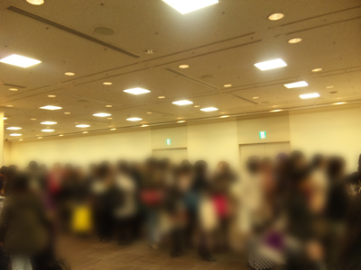 何の列だと思う? サークル列じゃないよ。 景品交換列でもないよ。 ましてや、入場列でもないんです。 写真撮影の列なんだぜ☆ 抱き枕の!!